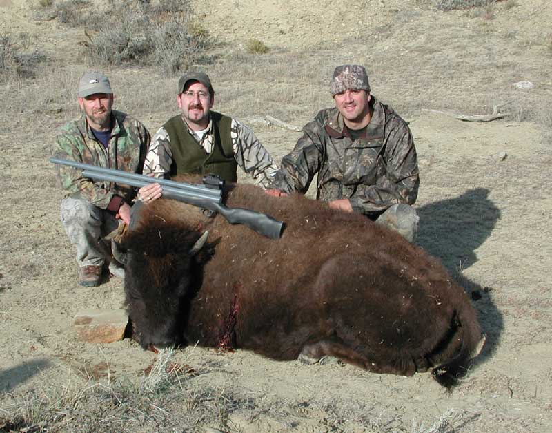 James Rivera in Wy. wanted to kill a buffalo with an airgun. So I took Bob Dean's 20mm up to him and I also videoed the hunt. From 30 yards, the 1005 grn. bullet went through ribs on both sides and stuck under the skin on the opposite side. The day before I left, we headed out and shot some prairie dogs with the .308.
