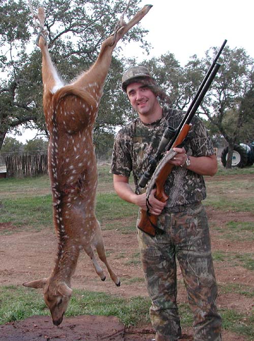 Kyle Tate took this awesome axis buck while hunting in San Antonio. He used the130 grain Pelletman hollow point in his father's (Terry Tate) Quackenbush .308. The deer's antlers measured 30''x30''