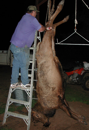 I shot this elk from a distance of 70 yards with the DAQ .458 mag. The Axis was shot from 75 yards with the same gun. I was using the 370 grn pointed bullet shot at 738 fps.