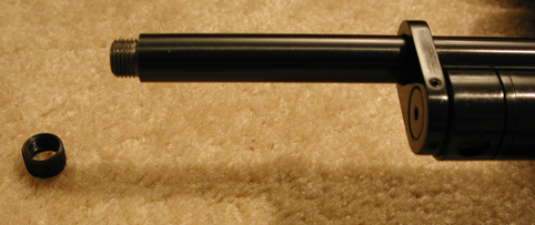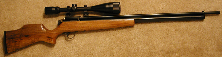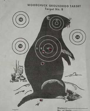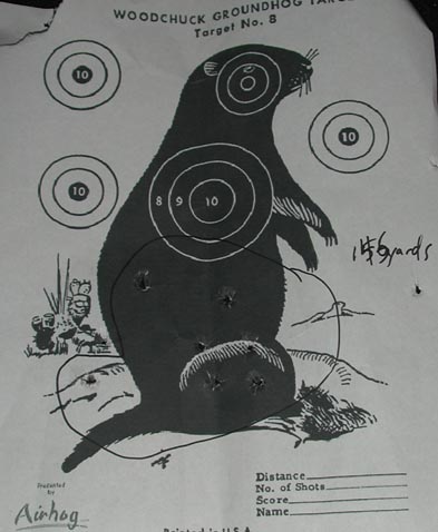 Finally had a chance to "tune" the .308. I trimmed 2 helixes off the spring to reduce the amount of air the gun was using. Also figured out the hammer cocking handle was severely rubbing against the groove it slides through. After I unscrewed it a little, it slid loosely in the groove. To much surprise, the velocity went up to 1035 fps on the 100 grain pellet before I cut the spring = 238 ft lbs. After cutting, it went down to 950 fps.= 200 ft lbs which gave it less vel. spread. The two targets above were shot at 100 yards using the 100 grn. round nose Pelletman pellets. Shot #4 on the woodchuck was the bottom hole.